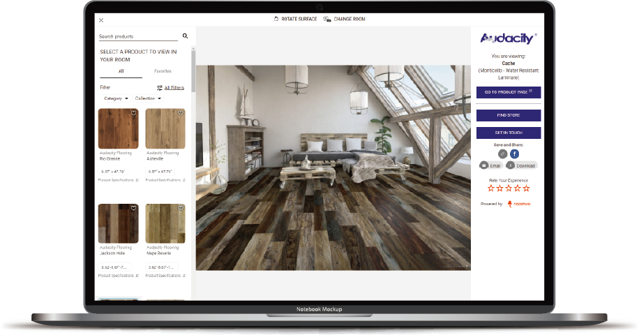 Install Audacity®’s leading room visualizer on your website, letting your customers